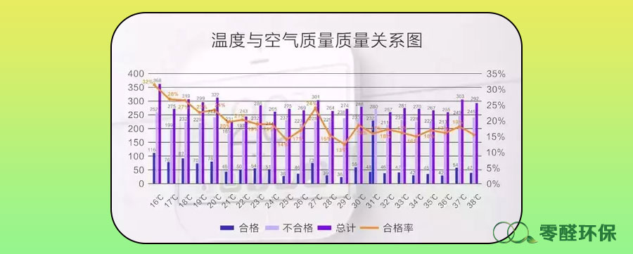 室內空氣質量與環境溫度相關,從合格率跟環境溫度的趨勢圖可以看出,合格率跟溫度升高呈現負相關性趨勢。